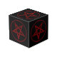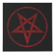 Pentagramme rouge, inversé, texturé en cercle, sur arrière - plan noir. Symbole occulte 666