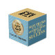 Votre choix de couleurs sur ce cube d'anniversaire de jalon employé avec un faux emblème de médaille d'or avec des rayures, personnalisées avec le nom de votre employé, le nombre d'années et d'autres textes, plus le logo de votre entreprise sur le haut.