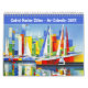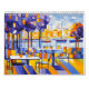 This art calendar features twelve vibrant cityscapes inspired by cubism and modern impressionism. Each month showcases a unique waterfront scene: riverside cafés, sailboats in the harbor, bridges spanning urban skylines, and architectural silhouettes bathed in shifting light.