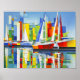 Cubist Sailboats in Colourful Harbour Poster