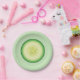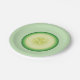 This paper plate features a green cartoon illustration of a cucumber slice.