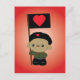 Cuddle Revolution Puppy post card. A cute puppy holding a heart flag with a cute heart beret, army jacket, and little black boots. Cuddle revolution! Very cute gift for fans of hearts and cuddly kawaii humour.