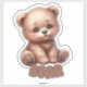 This large nursery sticker features an irresistibly cute, cartoon-style bear. The bear is sitting with its legs spread out and has a warm, gentle expression with large, shiny eyes. Its fur is a soft, light brown, and it has rosy cheeks that add to its adorable appearance. The bear's paws are detailed with small pads, and it looks incredibly huggable and friendly. Below the bear, the word "BEAR" is written in bold, playful letters, enhancing the overall child-friendly design perfect for a nursery.