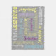 Cuddly Soft and Warm fleece Personalized Name Blanket. Pale Grey comfort with soft yellow, lavender, purple, aqua ice blue and white letters. Easily Personalized with the names and colour combonations of your choice for any room and every person. Especially nice for hard to find names, you can personalize many items any way you choose. You can make matching pillows, lamps and more.