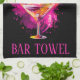 Martini Mixologue barman Cuisine ou Bar Serviette Cocktail rose. Martini cocktail rose avec un éclaboussure. Customisez votre police, votre texte, vos couleurs et plus encore avec ce décor de maison de serviettes de bain classe. Mixologie, mixologiste, barman ou bar salon classe rose chaud sur le thème noir.