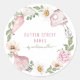 Un élégant caprice pâtissier pâtissier de la boulangerie pâtisserie étiquettes avec un type rose et vert et un mignon ustensiles de cuisson avec logo rond fleuri dans le rond. Personnalisez votre nom dans un type de signature de script moderne. La typographie est dans les teintes pastel et ajoute une touche fantaisiste d'élégance et de contraste. Ajoutez vos coordonnées et informations sur les médias sociaux au verso de la carte.