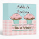 Employez ce livre de cuisine mignon de classeur de recette pour garder tous vos recettes et faits préférés de repas. Le classeur comporte un arrière - plan bleu-clair avec les contrôles roses au fond et aux mots "cuits au four à la perfection" avec deux petits gâteaux au-dessus de elle. Utilisez le modèle de premade pour insérer vos propres mots. Grand cadeau de pendaison de crémaillère ou pour n'importe qui qui aime faire cuire. Le classeur est conçu avec une épaisseur ces mesures 1,5 pouces.