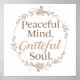 Set a daily intention for tranquillity and thankfulness with this elegant graphic. The affirmation, "Peaceful Mind, Grateful Soul," is beautifully framed by a simple, hand-drawn botanical wreath. Its clean and sophisticated design serves as a perfect focal point for meditation, journalling, or simply as a reminder to cultivate inner peace.