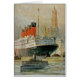 Vintage Ocean Liner illustration of Cunard's premeir 4-stack ocean liner Aquitainia sailing up the Hudson River to dock in the Early 20th Century.