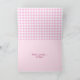 White cup and saucer with pink peonies and rhinestones on pink and white gingham pattern.