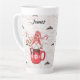 Cup full of Chocolate Gnome Mug. A cup full of Gnome all covered in dripping chocolate and candy canes all on a white birch background. Enjoy your morning coffee, latte or cocoa in this festive mug. Easily personalized with your name or greeting.