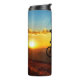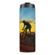Personalized water bottle with bicycle rider graphic and a sunset background. Add your person's name at the prompt! From HAMbyWhiteGlove aka HAMbWG