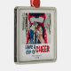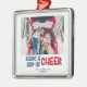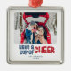 Photo ornament with blue and red font, "Have a cup of cheer!"