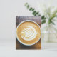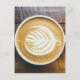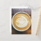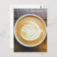Cup of Coffee Latte with Leaf-Shape Foam on Wood Postcard