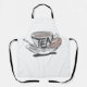 An illustration of a teacup on a china saucer, with a cooker or biscuit and a teaspoon. A picture for tea lovers, drawn in a retro style with halftones.
