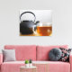 Cup of Tea with Black Metal Tea Kettle 16x20 Canvas Print
