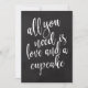 An elegant cutting edge wedding sign, features the text "All you need is love and a cupcake" in a extroverted script font, the brush texture adds a spontaneous and playful feeling. The background colour can personalized according to your needs and preferences, please contact me if you have any special request.