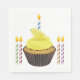 A yellow cupcake with candles. This design looks really effective on these Paper Napkins