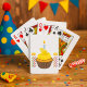 A yellow cupcake with candles. This design looks really effective on these Playing Cards