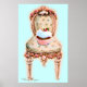 Victorian chair with cupcake is a fun print for girls rooms, bakery, cake shop or kitchen. I have added an aqua background to compliment the pinks and apricots in the chair and cake. The cupcake has a pansy on top and the chair has pink roses. If you need help or for custom order contact Greer at greerdesign@aol.com