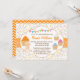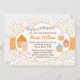 Sprinkle the mom to be with this adorable Baby Sprinkle invitation. Features a bunch of cupcakes with sprinkles and a little baby. Orange chevron design.
