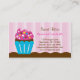 Identify your business in style with this cute, colourful and eye-catching bakery business card. Great for a bakery that specializes in cupcakes and other sweet treats. Features one big cupcake with with frosting and sprinkles on a stripes background. Add your information and make it your own.