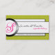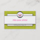 Promote your cafe cupcake bakery business with this cute, whimsical lime green, pink, black and white cute, whimsical monogram dots and cupcake business card. This business card features a bright dots background with a circle frame with a monogram letter inside. The design has layered rectangles displaying your business information. On the back is a cute cupcake displayed in a circular frame. This bold, modern, and stylish business card is also a great match for caterers, cafes, bakeries, cupcake businesses, party planners, bakers, chefs, business providing baked goods to retailers, wedding planners, interior designers, fashion designers, spas, salons, nail technicians, manicurists, estheticians, beauticians, retail clothing stores, jewellery stores, and more. ©2011 Pam's Designs.