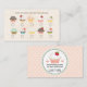 A sweet way to reward your most loyal customers! Mark each customer's visit to your bakery, and after ten purchases, reward them with a free cupcake or pastry. Yummy and pretty bakery loyalty cards with different strawberry, chocolate and vanilla cupcakes with sprinkles, flower shaped icing, and strawberries on a parchment look background. The pastel colours add to the sweetness of the this rewards card. Customize the front and back of the card with your own wording. Perfect for the pastry chef, bakery owner or anyone starting to sell their own baked goods. Artwork © Chrissy H. Studios, LLC. All rights reserved.