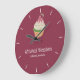 Cupcake Bakery Pastry Chef Personalized Clock. A sweet and charming wall clock featuring an adorable hand-drawn cupcake illustration in soft pink and green tones with your bakery name and tagline. Perfect for displaying in your bakery, kitchen, café, pastry shop, or cooking studio. A thoughtful personalized gift for bakery owners, pastry chefs, cake decorators, baking enthusiasts, or anyone who loves sweet-themed decor. Customize with your business name to make it uniquely yours.