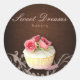 Cupcake Bakery Sticker Linen Brown Pink Roses