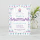 Cute Cupcake themed Birthday Invitation in a purple and turquoise color scheme, featuring a cupcake illustration and chevron pattern background. Perfect for a baking or cupcake decorating themed party, and for birthday parties in general.