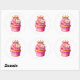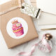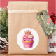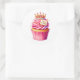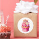 Round sticker is shown with a cute cupcake birthday princess crown print.