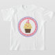 This is a sweet birthday shirt for a 4 year old. It features the number 4 on a chocolate cupcake with vanilla frosting and pink hearts.