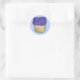 Les autocollants présentent une illustration originale d'aquarelle d'un cupcake pourpre gelé sur un arrière - plan bleu.