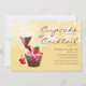 Cette élégante et amusante invitation à l'échange de cupcakes et aux cocktails propose un cocktail à base de martini au chocolat accompagné de deux cerises et d'un cupcake au chocolat surmonté d'une glace rose et d'une fraise assise dans un porte-cupcake en dentelle. Le arrière - plan est des flocons de neige couleur crème légère. Facilement customisé avec vos informations. :: LES ENVELOPPES COMPRENAIENT :