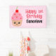 Introducing our delightful Personalized Cupcake Birthday Banner, the perfect addition to celebrate your little one's big day! This charming banner features a precious cupcake character set against a soft pastel pink backdrop, adding a whimsical touch to any birthday celebration. Use the Personalize feature to customize both the text and the birthday child's name to make it uniquely hers. Whether you're celebrating a first birthday or any special milestone, this banner is a wonderful way to add a sweet touch to the decor. The banner can be a cherished keepsake long after the celebration is over. Create unforgettable memories with our Personalized Cupcake Birthday Banner. Order now and watch your birthday girl's face light up with joy as she sees her name in lights on her special day!