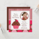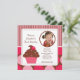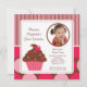 Cupcake Photo Birthday Invitation Cherry Pink Dots