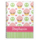 This cute and yummy Peace Love Cupcakes chocolate cupcake spiral notebook cover with pink icing and sprinkles on a pink and green peace symbol and heart background can be personalized with your name on the pink ribbon design. This fun and girly custom notebook can be used as a journal or diary too, and it is equally great for home office supplies of back to school use. Artwork © Chrissy H. Studios, LLC. All Rights Reserved.
