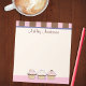 Personalize the name on this cute cupcakes and pink and brown stripes bordered notepad. Created in part with graphics by Scrappin Doodles at www.scrappindoodles.com and Resale Clipart at www.resaleclipart.com. Great stocking stuffer or back to school gift.