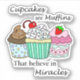 Cute hand drawn cartoon chocolate, strawberry and vanilla cupcakes sticker.