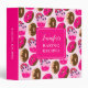 A colorful and cute baking recipes binder which can be personalized with the inclusion of your name. The design is sweet and modern. The binder features colorful donuts and cupcakes and appears in a pretty and elegant pink.