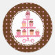 Cute and modern sticker. Perfect for party favours or to seal envelopes. Features cupcakes on a stand with polka dots pattern background. Pink, white and brown colour palette. Other matching products available in this store.