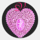 CUPID LACE HEART MONOGRAM ,pink Classic Round Sticker