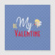 Be My Valentine has muted periwinkle blue hearts sprinkled over a bed of blue, and finished with a decorative text accompanied by young cupid.