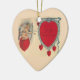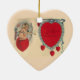 This little Cupid is shooting his arrow into a heart with a Valentine message of love within this beautiful Victorian filigree trim Valentine's Day ornament.