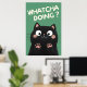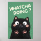 Add humour to your bathroom décor with this funny black cat poster! Featuring a cute cartoon kitty asking “Whatcha Doing?”, this adorable wall art is perfect for cat lovers. Ideal for bathrooms, bedrooms, or offices — a purrfect mix of cute and funny cat humour to brighten any space.