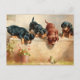 Curious Dachshund Puppies and a Frog Postcard