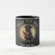 Curious pirate cat deciphers ancient mysteries Mug: A black cat dressed as a pirate deciphers an ancient document against a retro sunset.