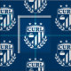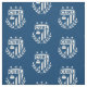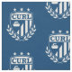 Fabric featuring a curling crest pattern in white on blue background. Perfect for curlers and curling fans.