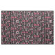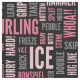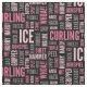 Fabric featuring a pattern of curling terms in shades of pink and grey on black background. Perfect for curlers and curling fans.